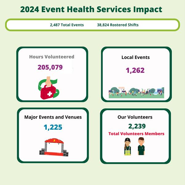 Our Event Health Services teams were frontline responders at major events across the state, from sporting fixtures to music festivals, ensuring Victorians had immediate access to first aid and emergency care when they needed it most. Behind the scenes, thousands of volunteer hours were logged, with professionalism, preparation, and heart on display at every event.