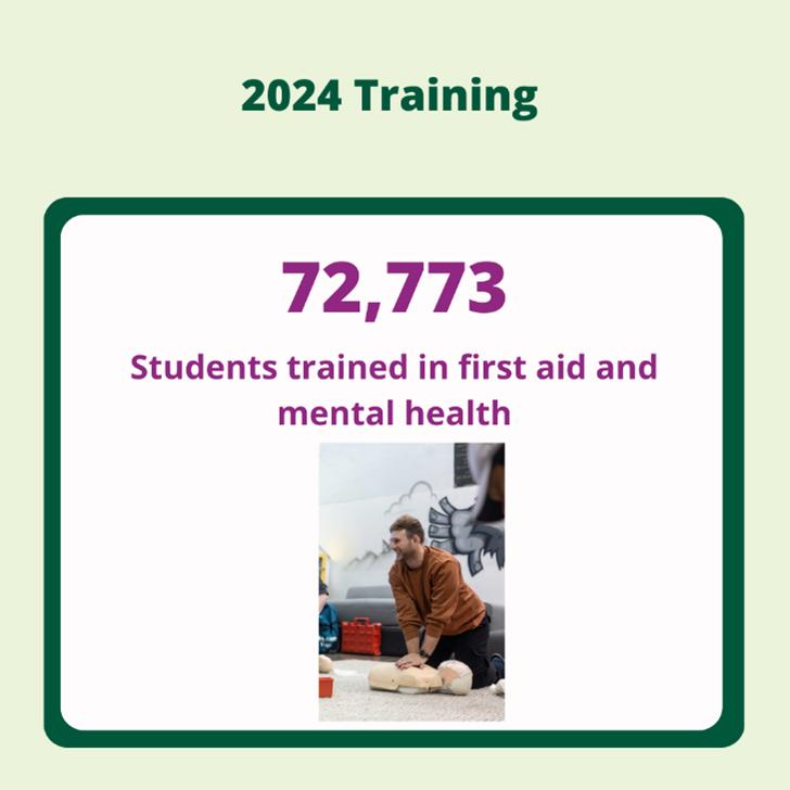We trained a record-breaking 72,773 students in first aid and mental health, equipping more people than ever before with life-saving skills.