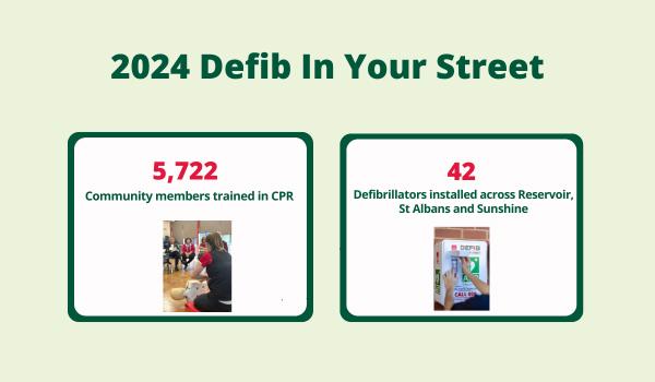 We trained 5,722 people in CPR and installed 42 public defibrillators across Reservoir, St Albans and Sunshine, all at no cost to the community. Thanks to this program, average travel time to a defib in Reservoir dropped from 5.36 to 2.74 minutes, a huge difference when every second matters.