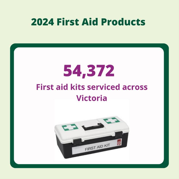 We serviced 54,372 first aid kits across Victoria, an average of 218 kits per day, ensuring workplaces and community spaces were equipped and compliant. With demand growing, we doubled our on-the-road team to 20, supporting an 83% increase in serviced locations over the past two years. With 8,816 locations visited, we’re proud to be keeping thousands of kits and defibrillators ready for emergencies.
