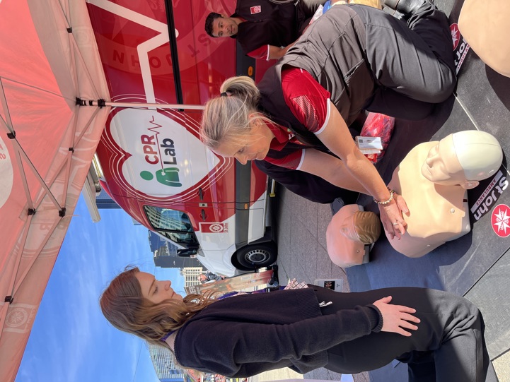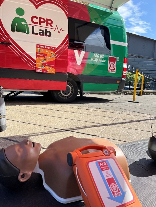 Throughout the day, St John team will deliver free, hands-on CPR and defibrillator training to all by-passers eager to learn how to respond in a cardiac emergency.